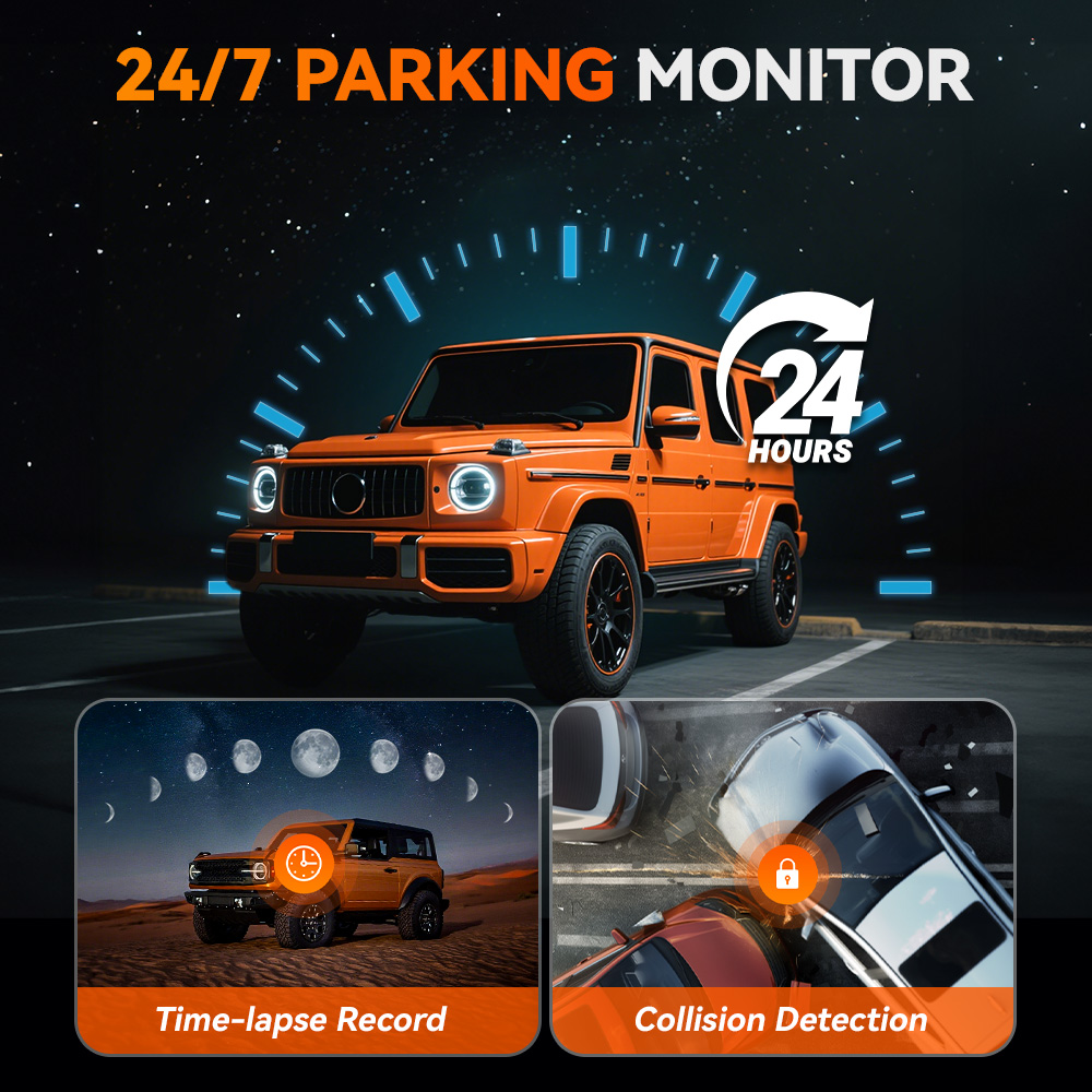 ✔ Parking Mode – 24/7 surveillance when parked (requires hardwire kit)